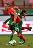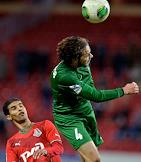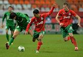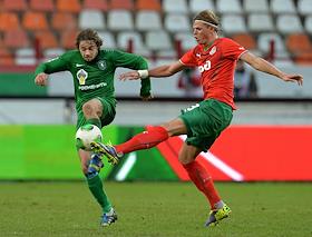 СОГАЗ-Чемпионат России по футболу 2013/2014. 11-й тур. Игрок команды "Томь" Павел Игнатович (в центре) в матче между командами "Локомотив"(Москва) и "Томь" (Томск) на стадионе "Локомотив".