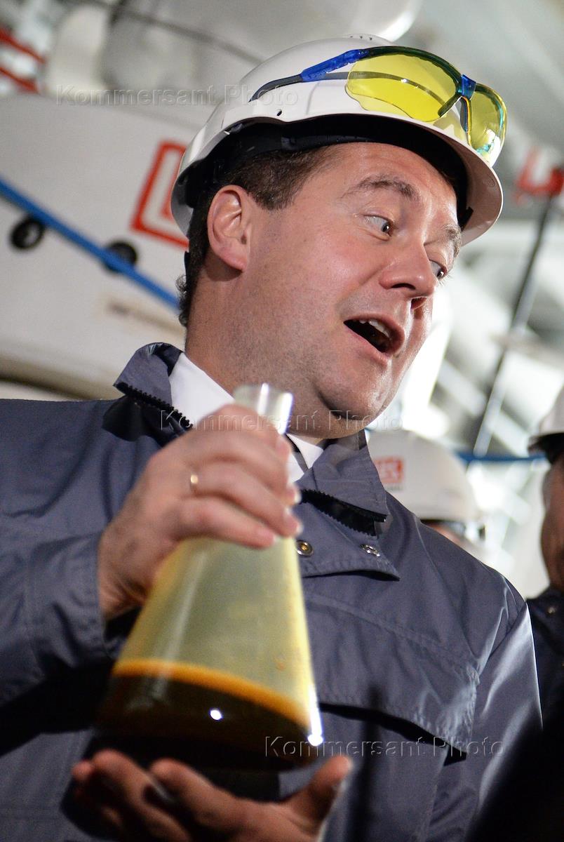Рабочий визит предедателя правительства РФ Дмитрия Медведева в Астраханскую область. Морская ледостойкая стационарная платформа имени Ю. Корчагина ОАО "Лукойл" в Каспийской море.