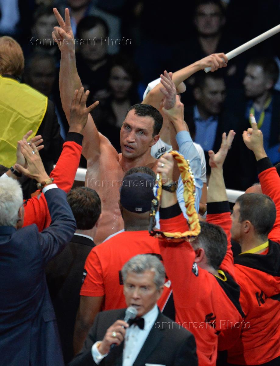 Боксерское шоу "Кличко VS Поветкин". Боксер, чемпион мира в супертяжелом весе по версиям IBF и WBO Владимир Кличко после боя с чемпионом WBA Александром Поветкиным в СК "Олимпийский".