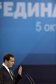 Председатель правительства России Дмитрий Медведев на XIV Съезде Всероссийской политической партии "Единая Россия" в Гостином дворе.