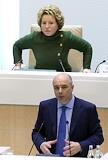 Председатель Совета Федерации России Валентина Матвиенко (вверху) и председатель Счетной палаты Татьяна Голикова (внизу) на заседании Совета Федерации России.