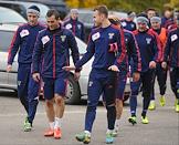 Слева направо: футболисты Юрий Жирков, Александр Кержаков и Игорь Акинфеев после открытой тренировки сборной России по футболу. Тренировка прошла на Стадионе имени Эдуарда Стрельцова.
