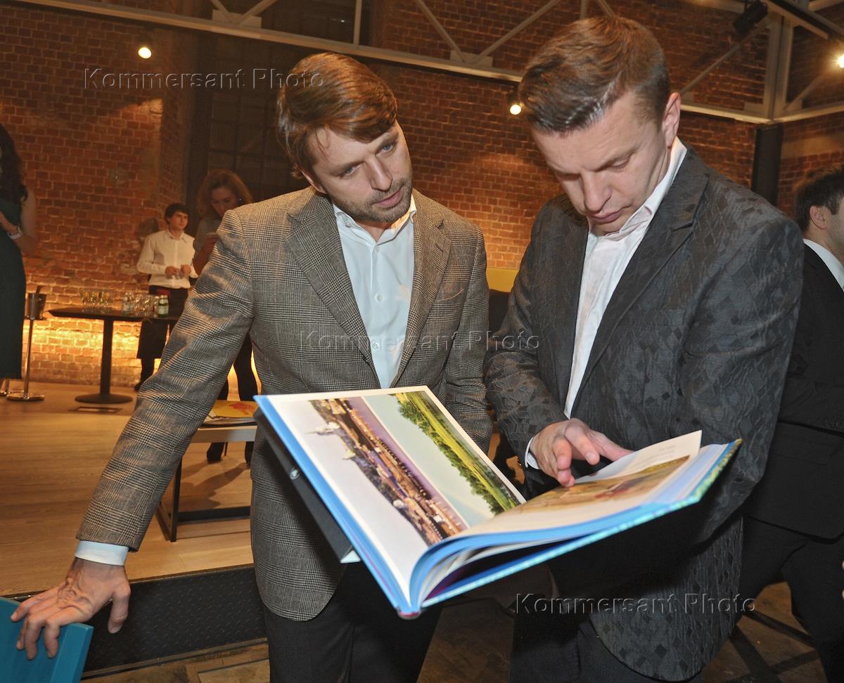 Президент холдинга "ГРУППА ИМА" Андрей Гнатюк (слева) и директор по стратегическим направлениям издательского дома "Коммерсантъ" Виктор Лошак (справа) на предпремьерном показе документального фильма "Цвет нации". Показ состоялся в Центре документального кино.