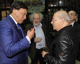 Президент факультета журналистики Московского государственного университета (МГУ) имени М.В.Ломоносова Ясен Засурский (слева) и главный редактор радиостанции "Эхо Москвы" Алексей Венедиктов (справа) на вечере "Митинг в виде фуршета" по поводу Дня рождения "Эха Москвы". Вечер прошел в ресторане "Галерея Художника".