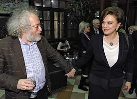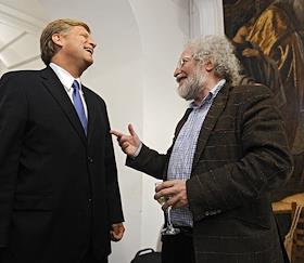 Председатель Совета при президенте России по развитию гражданского общества и правам человека Михаил Федотов (слева) и главный редактор радиостанции "Эхо Москвы" Алексей Венедиктов (справа) на вечере "Митинг в виде фуршета" по поводу Дня рождения "Эха Москвы". Вечер прошел в ресторане "Галерея Художника".