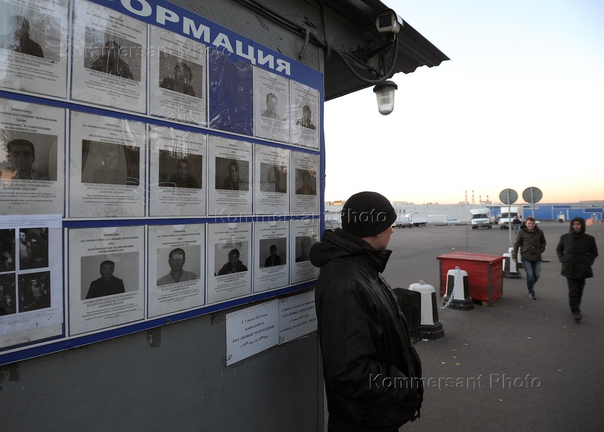 Доска Информации службы безопасности на территории Овощной базы в Бирюлево, где прошли беспорядки во время народного схода жителей Бирюлево. Участники схода требовали задержать преступника, который 10 октября зарезал молодого человека, закрыть расположенную в районе овощную базу и ужесточить миграционное законодательство.
