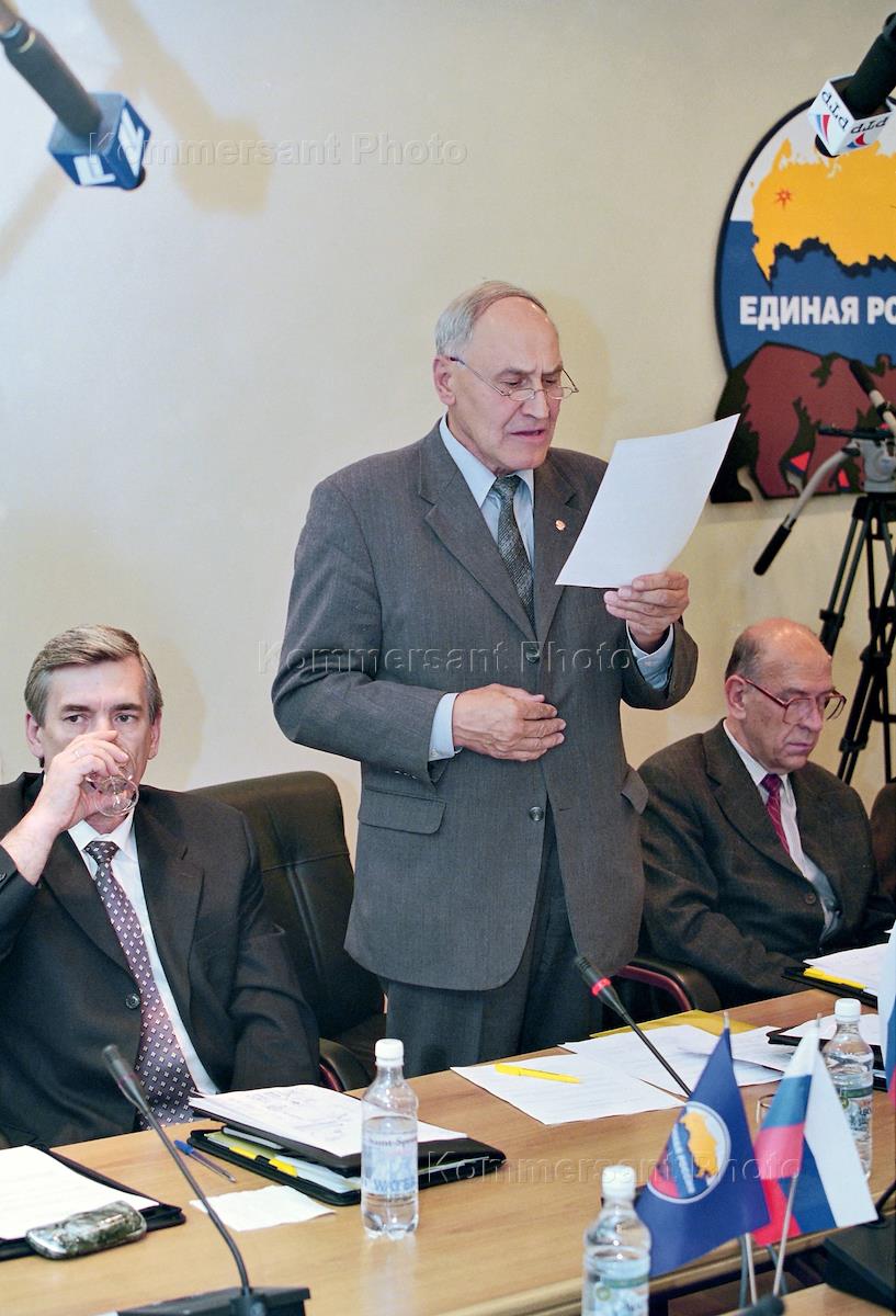 Съезд "Единой России". Телеведущий, академик российской Академии телевидения Николай Дроздов (в центре) во время заседания съезда.