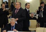 "Открытая трибуна" на тему "Реформирование судебной системы". Советник Президента России Вениамин Яковлев (слева) на заседании в Госдуме России.
