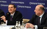 "Открытая трибуна" на тему "Реформирование судебной системы". Слева направо: первый заместитель председателя Верховного суда России Петр Серков, председатель Государственной думы России Сергей Нарышкин на заседании в Госдуме России.