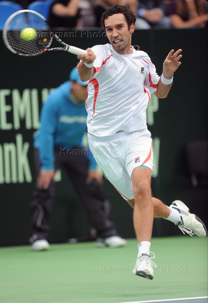 XXIV Международный теннисный турнир "Банк Москвы Кубок Кремля" прошел в спорткомплексе (СК) "Олимпийский". Теннисист из Франции Ришар Гаске во время финального матча.