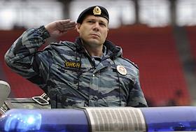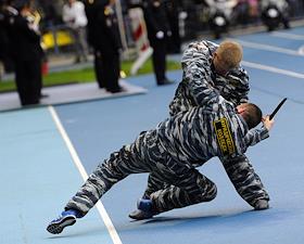 II Спортивный праздник московской полиции, посвященный Дню сотрудника ОВД, прошел на Большой спортивной арене "Лужники". Показательный захват нарушителя.