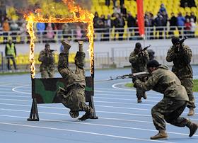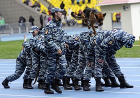 II Спортивный праздник московской полиции, посвященный Дню сотрудника ОВД, прошел на Большой спортивной арене "Лужники". Показательные выступления.