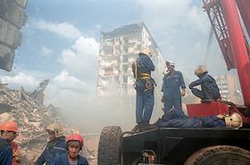 В ночь на 9 сентября 1999 года, террористы взорвали в Москве жилой дом номер 19 по улице Гурьянова. В результате этого преступления погибли 106 человек, более 200 получили ранения. Спасатели разбирают завалы.