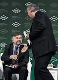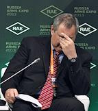 Заместитель министра экономического развития России Андрей Клепач (слева) и заместитель председателя правительства России Дмитрий Рогозин (справа) во время Девятой международной выставки вооружения, военной техники и боеприпасов Russia Arms Expo. Выставка прошла на территории полигона "Старатель".