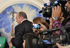 Выборы президента Грузии. Кандидат от коалиции "Грузинская мечта" Георгий Маргвелашвили после голосования на одном из избирательных участков города.