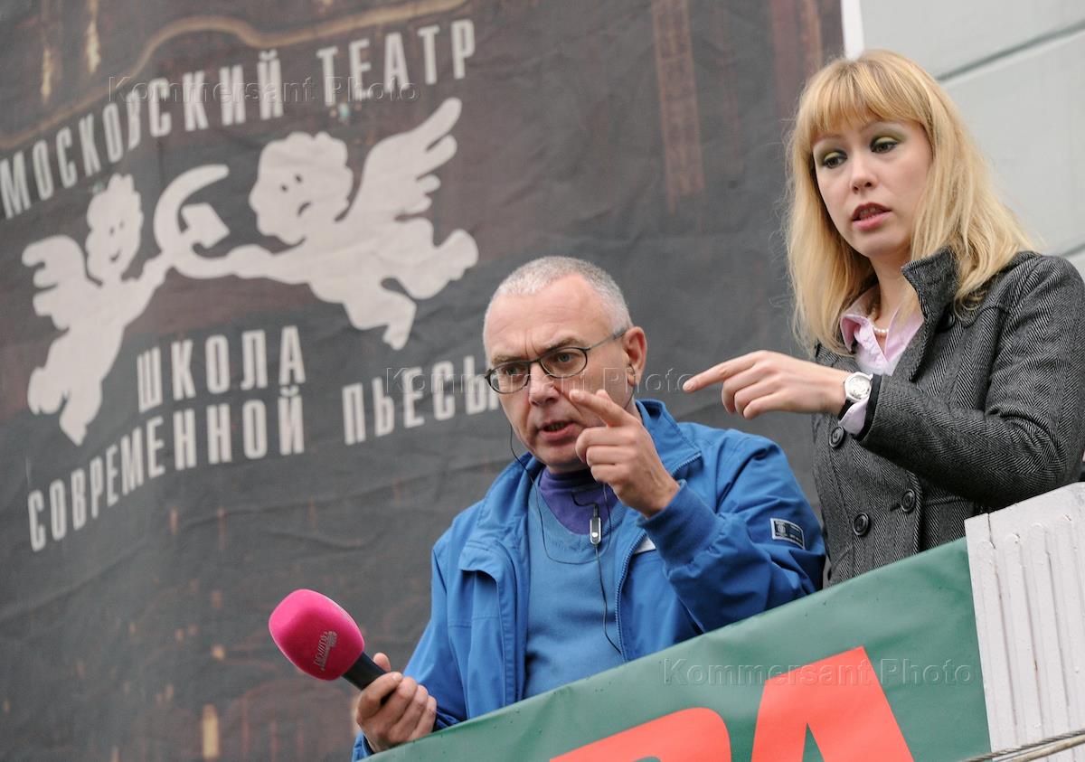 Телеведущий телеканала "Дождь. Optimistic Channel" Павел Лобков (слева) на Марше оппозиции за свободу "узников 6 мая" от Пушкинской до Лубянской площади.