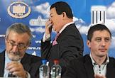 Председатель Исполнительного комитета Ассоциации "Центрально– Черноземная" Григорий Федоров (в центре) и член Комитета Государственной думы России по культуре Иосиф Кобзон (справа) на четвертом съезде некоммерческих организаций России. Съезд прошел в Большом актовом зале Всероссийской библиотеки им.Ленина.