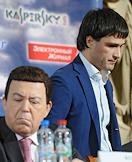 Член Комитета Государственной думы России по культуре Иосиф Кобзон (слева) и представитель в Совете Федерации от исполнительной власти Челябинской области Руслан Гаттаров (справа) на четвертом съезде некоммерческих организаций России. Съезд прошел в Большом актовом зале Всероссийской библиотеки им.Ленина.