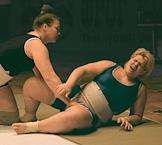 Female sumo-wrestlers take part in the sumo tournament held in teh Krylya Sovetov Sports Complex.