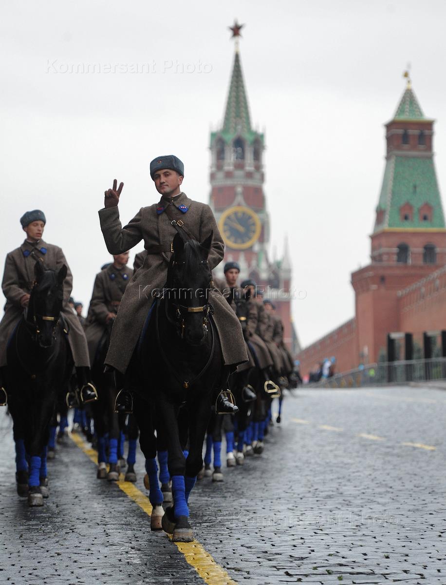 Участники парада на торжественном марше, посвященном 72-й годовщине исторического парада на Красной площади 7 ноября 1941 года.