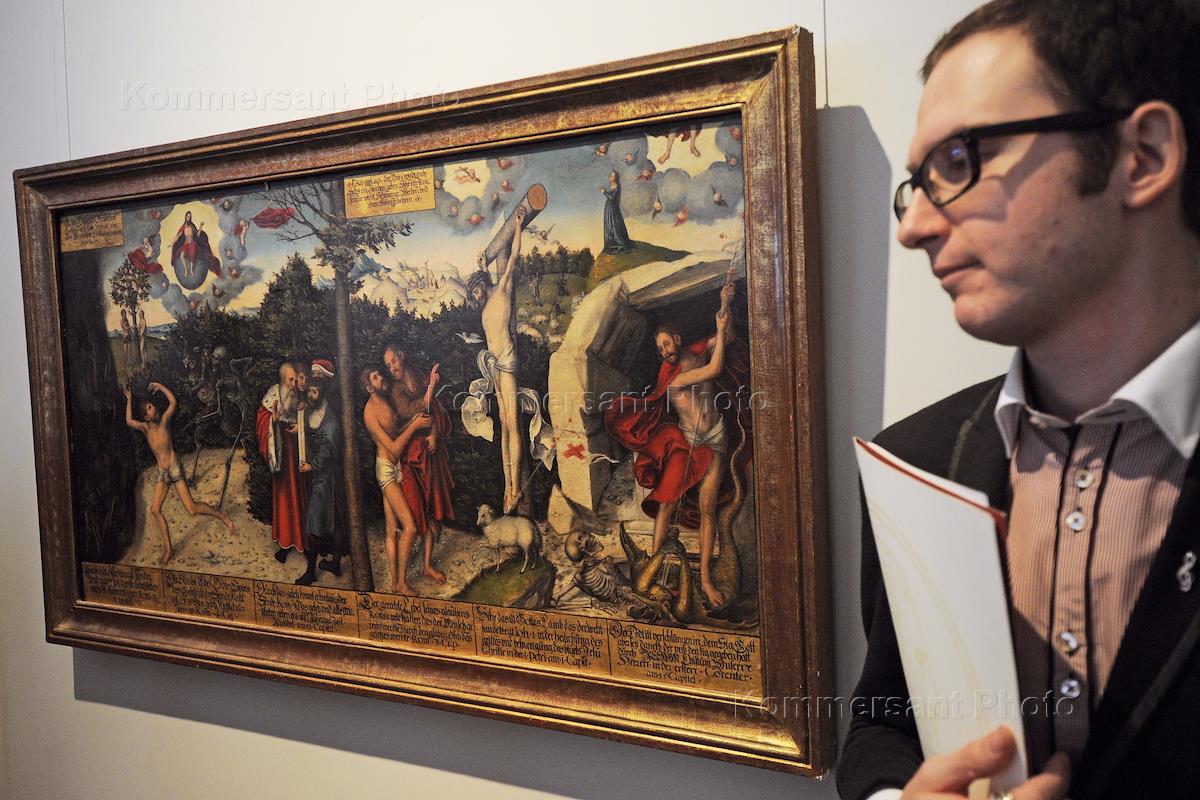 Посетители на пресс-показе произведений искусства аукционного дома Christie's в Доме-музее Муравьева-Апостола.