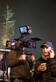 Киноиндустрия. Съемка рекламного ролика кинокомпании "Park Production". Оператор держит камеру на плече во время работы.