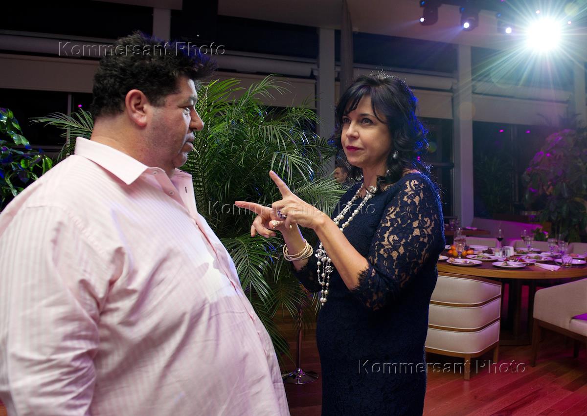 Американский PR-менеджер Роб Голдстоун (слева) и супруга президента Crocus Group Араса Агаларова Ирина (справа) во время полуфинала конкурса "Мисс Вселенная – 2013" (Miss Universe). Полуфинал конкурса прошел в Crocus City Hall.