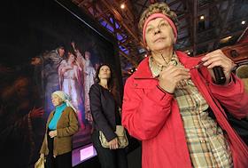 Член комитета Государственной думы России по культуре Мария Максакова (справа) на XII Церковно-общественной выставке-форуме "Православная Русь. Моя история. Романовы". Выставка, посвященная 400-летию династии российских монархов, прошла в центральном выставочном зале (ЦВЗ) "Манеж".