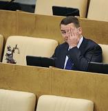 Председатель комитета Государственной думы России по делам общественных объединений и религиозных организаций Ярослав Нилов на пленарном заседании Госдумы. Скульптура Фемиды - символа правосудия.