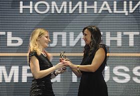 Директор по рекламе издательского дома "Коммерсантъ" Джамиля Зуауи (справа) во время церемонии вручения премии "Год с Коммерсантом". Церемония прошла в клубе ICON.