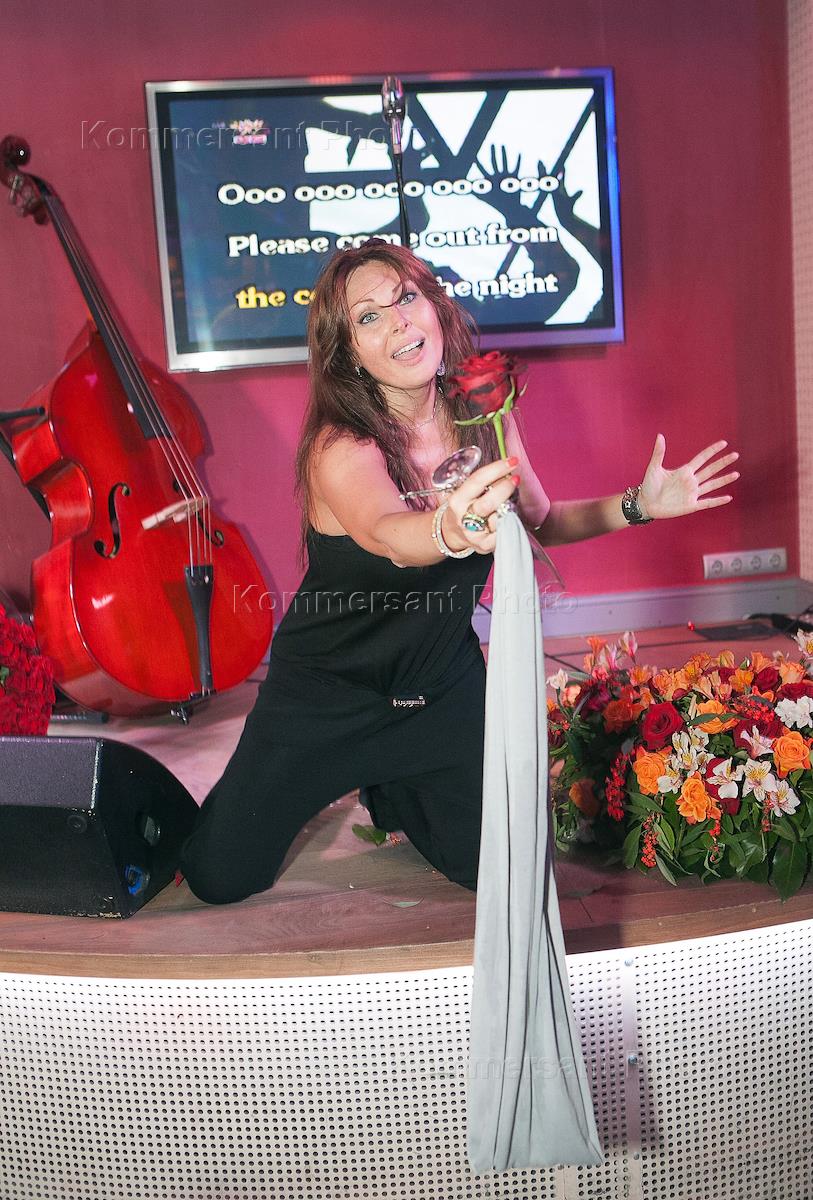 Актриса Наталья Бочкарева во время празднования своего Дня рождения в караоке-клубе "Ля Музон".