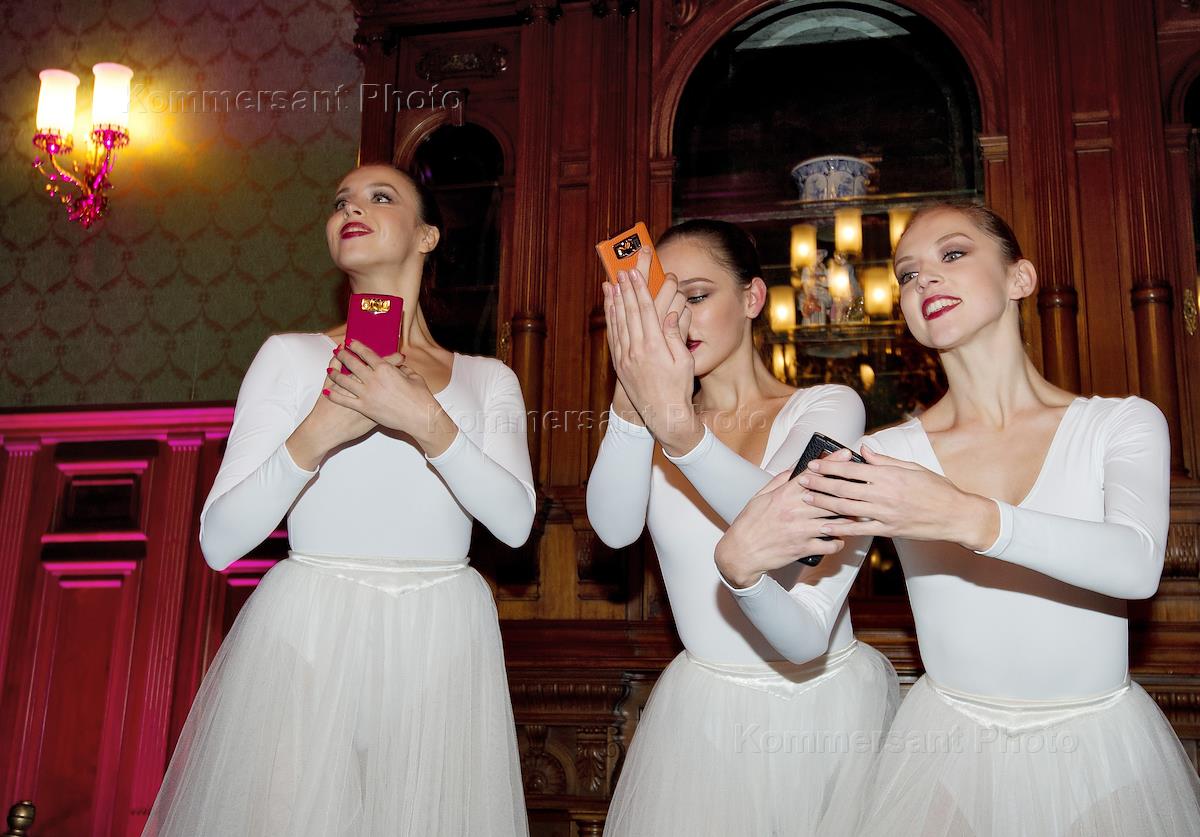 Ужин по случаю презентации нового смартфона Vertu Constellation. Слева направо: создательницы креативного агентства "Bell’Arte" Валерия Ковальзон, Диана Сарычева, Татьяна Роднянская в резиденции посла Великобритани.