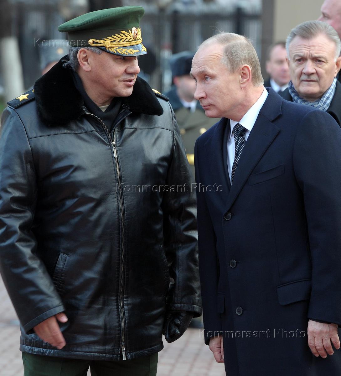 Рабочая поездка президента России Владимира Путина в Рязань. Президент России Владимир Путин (слева), министр обороны России Сергей Шойгу (справа) во время посещения Рязанского высшего воздушно-десантного командного училища имени генерала армии В.Ф. Маргелова.
