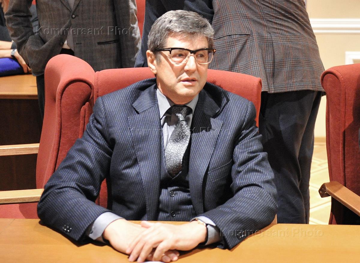 Deputy Prosecutor General Alexander Zvyagintsev (left) and General Director RBC channel Alexander Lyubimov (right) during a meeting with the head of Federal Agency for Press and Mass Communications, National Union of bibliophiles president Mikhail Seslavinskiy in the Literature Club, dedicated to the transfer archival materials of poet and journalist Alexei Surkov to the State Literary Museum Rospechat.