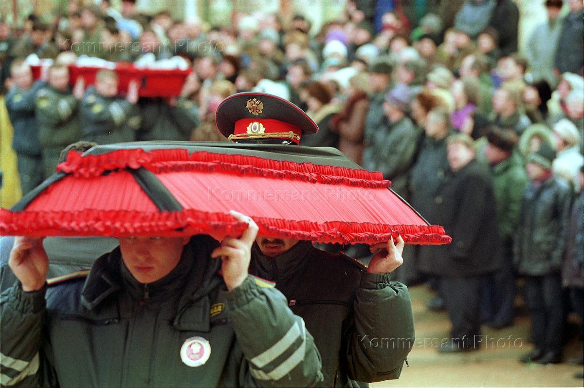The funeral of 18 OMON special police forces members died in Grozny, Chechnya