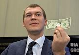 П/к депутата Госдумы РФ Михаила Дегтярева, посвященная законопроекту о запрете хождения и хранения долларов США в России, который был внесен на рассмотрение в Госдуму 13 ноября, пресс-центре РИА "Новости".