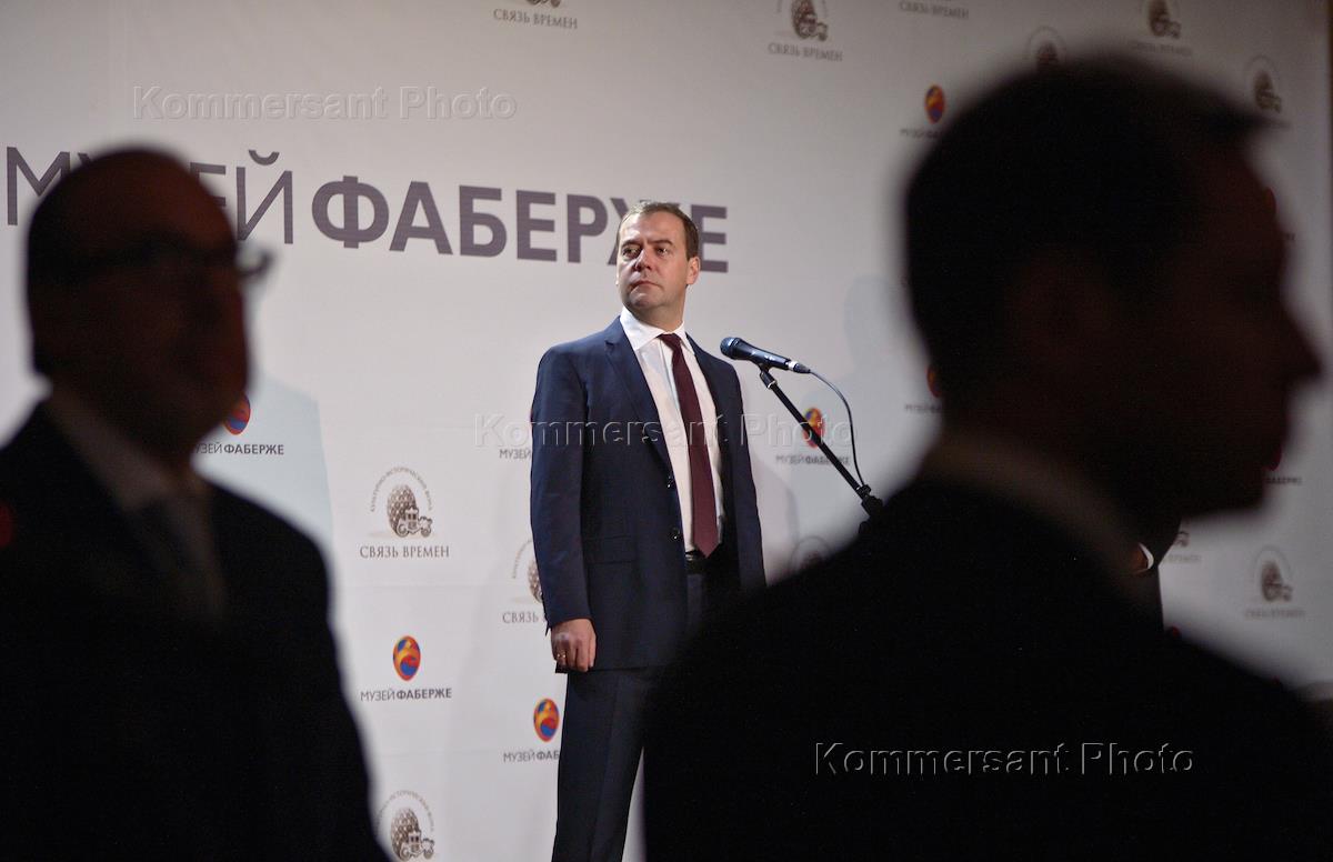 Председатель Правительства Дмитрий Медведев во время посещения музея Фаберже в отреставрированном Шуваловском дворце Санкт-Петербурга.