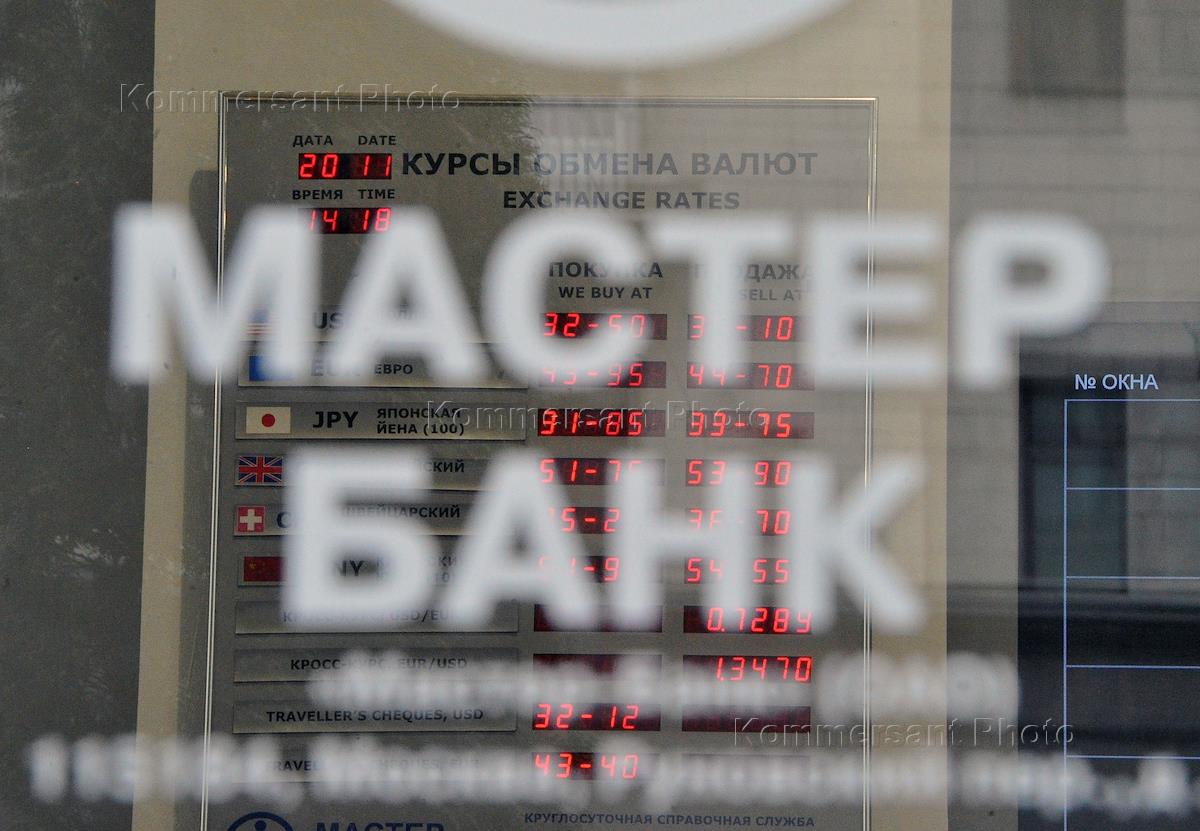 Отделение Мастер-банка на Тверской улице. Табло с курсом валют.