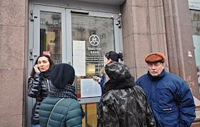 Клиенты у отделения "Мастер-банка" на Тверской улице.