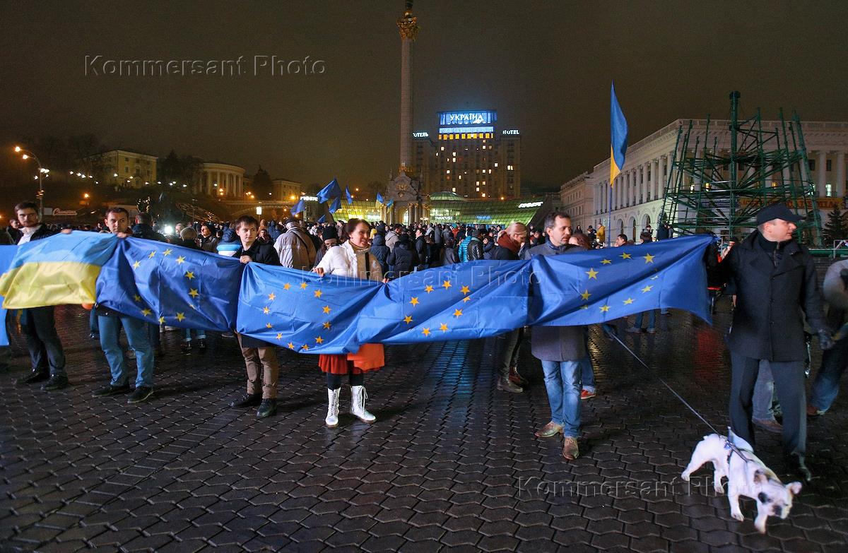 Представители оппозиции на митинге за вступление Украины в Евросоюз на Майдане Независимости в Киеве.