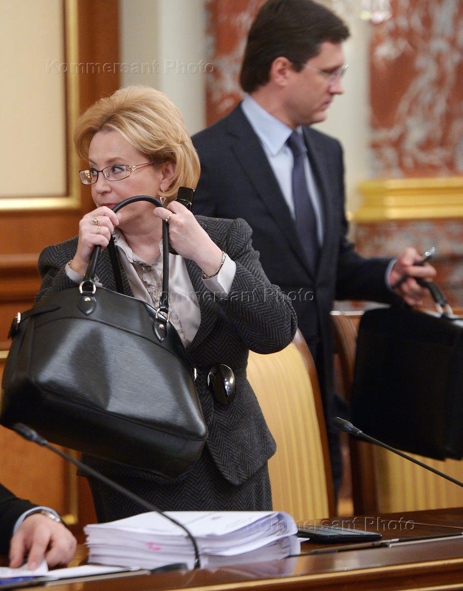 Russian Minister of Health Veronika Skvortsova (left) and Russian Energy Minister Alexander Novak (right) at a meeting of the Russian Government.