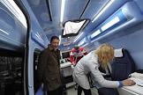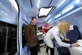 Президент Олимпийского комитета России, заместитель председателя Государственной думы России Александр Жуков (слева) на презентации мобильных лабораторий Инновационного центра Олимпийского комитета России для подготовки сборных команд России на тренировочных сборах.