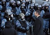 <ЕвроМайдан. Акции против приостановления евроинтеграции Украины. Подразделение МВД Украины "Беркут" охраняет здание Кабинета министров Украины.