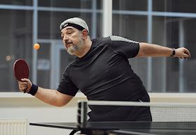 Президент Группы "Полипластик" Мирон Гориловский во время игры в настольный теннис.