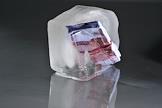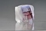 Обложка для журнала "Деньги". Денежные купюры во льду.