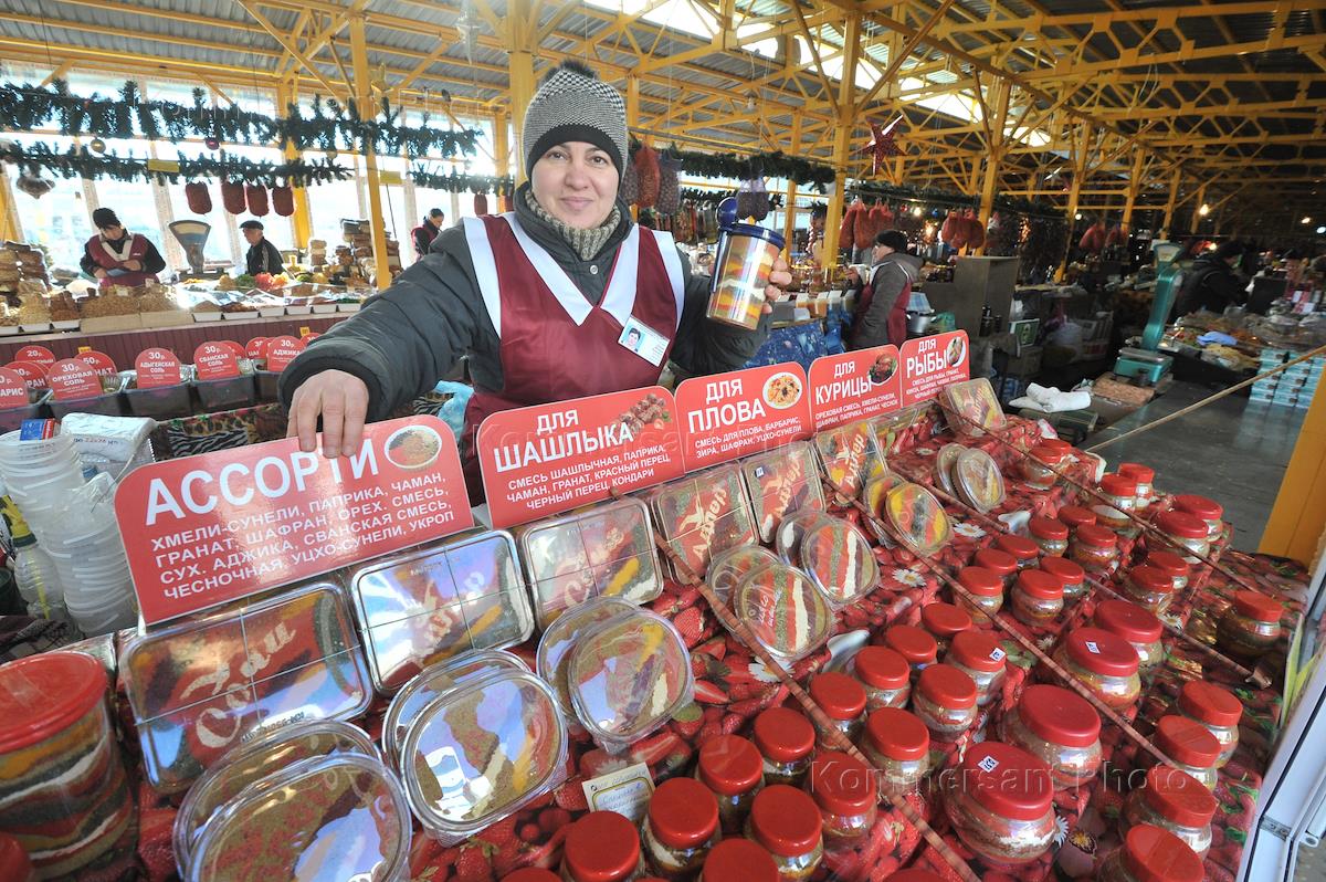 Жанровая фотография. Продажа веников из эвкалипта и лавра на рынке.