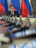Председатель правительства России Дмитрий Медведев на заседании правительственной комиссии по вопросам социально-экономического развития Северо-Кавказского федерального округа. Заседание прошло в Доме приемов правительства России.