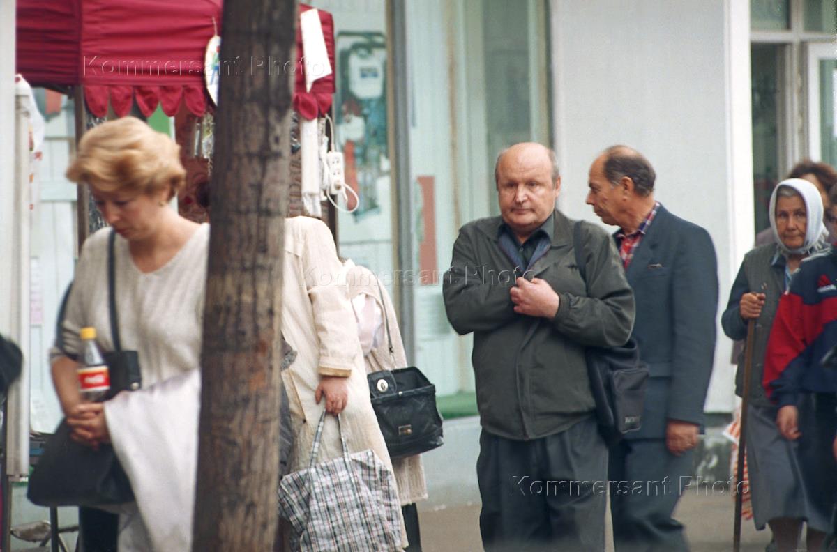 Arrest of a pickpocket at a Moscow market place.