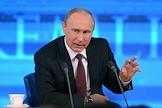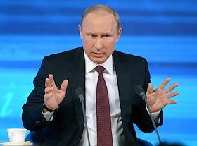 Президент России Владимир Путин во время своей ежегодной пресс-конференции в Центре международной торговли на Красной Пресне.