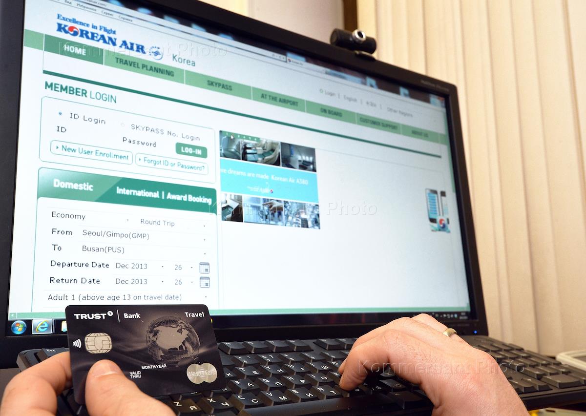 Жанровая фотография. Кредитная карта банка "Траст". Покупки через интернет.